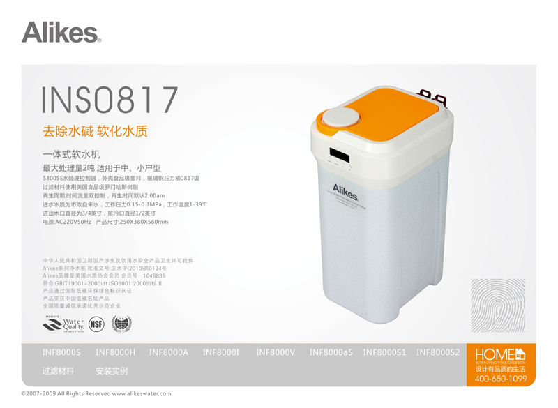 軟水機是將軟水控制器與玻璃鋼壓力桶結(jié)合,通過離子交換樹脂去除水中的鈣、鎂離子(即水堿),降低水質(zhì)硬度的水處理設(shè)備。軟化水屬于生活用水,可以延長如熱水器、地暖等設(shè)備的使用壽命。使洗滌后的衣物蓬松柔軟。避免潔具印痕和污垢。